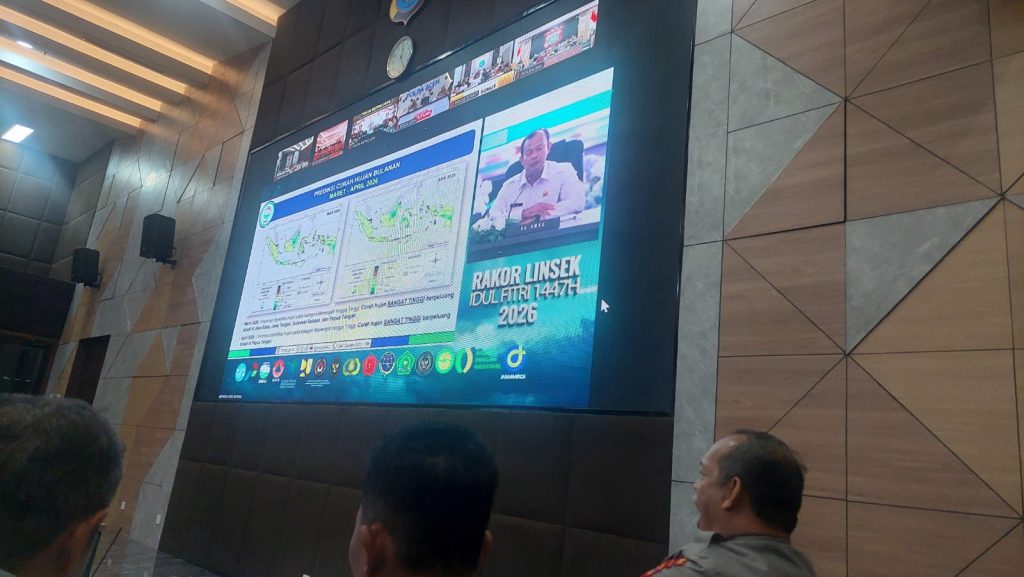 Senin, (2/3/2026) BMKG Kalimantan Selatan diwakili oleh Ketua Pokja Pengelolaan Data dan Informasi Stasiun Klimatologi Kalimantan Selatan, Wiji Cahyadi, M.Ling., menghadiri Zoom Meeting Rapat Koordinasi Lintas Sektoral Ketupat-2026 yang dipimpin oleh Kapolri, dilaksanakan di Ruang Rupatama Polda Kalimantan Selatan. Rakor tersebut digelar secara virtual bersama Polri dan sejumlah kementerian terkait dalam rangka persiapan Operasi Ketupat 2026 menjelang Idul Fitri 1447 Hijriah dan bertujuan memperkuat sinergi antara pemerintah pusat dan daerah, khususnya dalam menjaga keamanan dan ketertiban masyarakat (kamtibmas), serta memastikan kelancaran arus mudik dan ketersediaan bahan pangan menjelang hari raya. Rakor menekankan pentingnya sinergi lintas kementerian dan lembaga dalam memastikan kelancaran transportasi, keselamatan masyarakat, serta antisipasi potensi cuaca ekstrem di berbagai wilayah Indonesia. BMKG berkomitmen mendukung melalui penyediaan informasi prakiraan cuaca dan peringatan dini yang cepat, tepat, dan mudah dipahami. BMKG Kalimantan Selatan berkomitmen mewujudkan kegiatan saat Idul Fitri yang aman, nyaman dan lancar bagi seluruh masyarakat di Kalimantan Selatan.