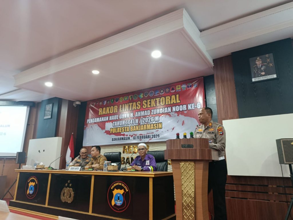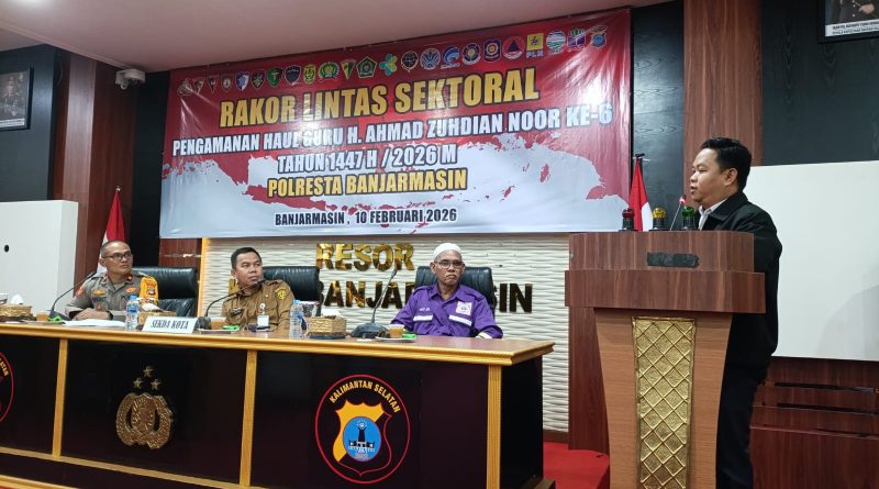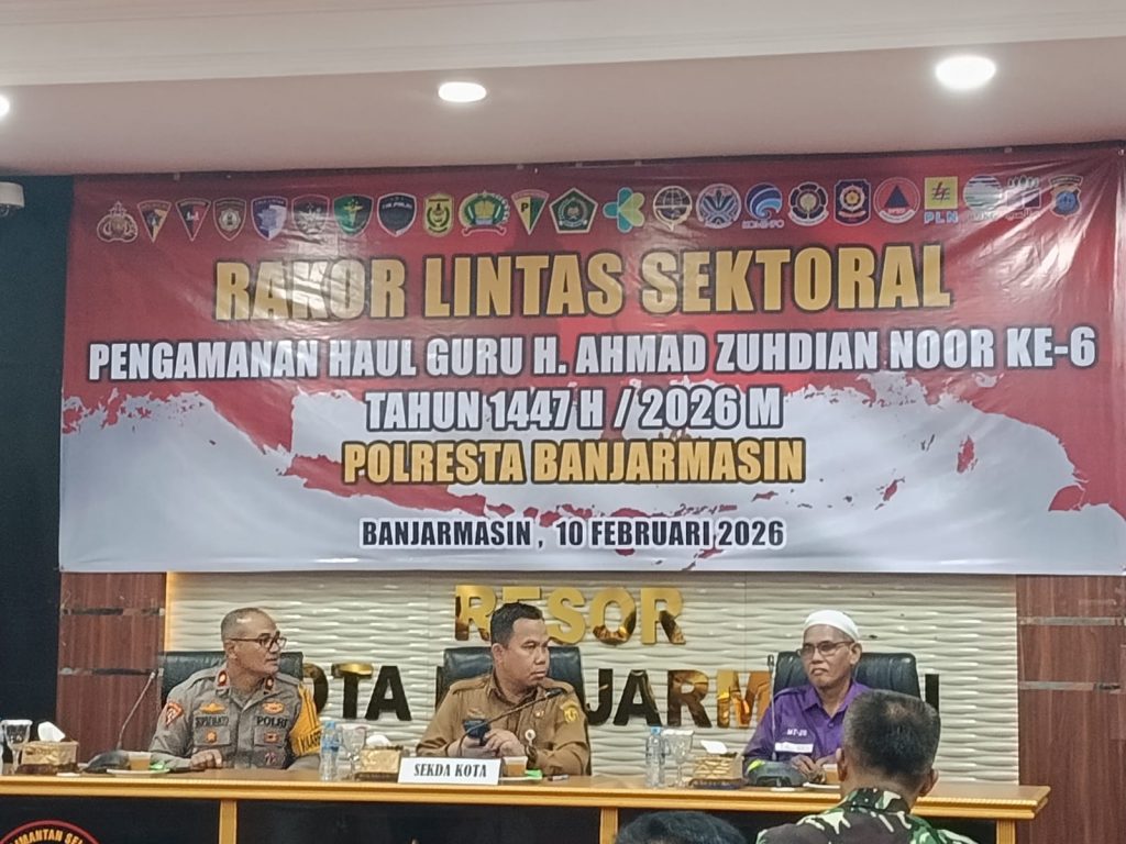 Selasa (10/02/2026), Dalam rangka memastikan keamanan dan kelancaran pelaksanaan Haul ke-6 Abah Haji Guru H. Ahmad Zuhdian Noor (1447 H/2026 M), Badan Meteorologi, Klimatologi, dan Geofisika (BMKG) Kalimantan Selatan secara aktif berpartisipasi dalam Rapat Koordinasi Pengamanan yang digelar di Polresta Banjarmasin. Rapat yang dipimpin langsung oleh Sekretaris Daerah Kota Banjarmasin, Ikhsan Budiman bersama Wakapolresta Banjarmasin, AKBP Arwin Amrih Wientama dan Panitia Haul ini, fokus pada pembahasan mengenai Manajemen Lalu Lintas, Keamanan dan Ketertiban, serta kesiapan Fasilitas Penunjang. Kegiatan keagamaan besar tersebut akan dilaksanakan pada Sabtu, 14 Februari 2026, mendapat perhatian khusus dari berbagai pihak. BMKG Kalimantan Selatan menitikberatkan pada prediksi cuaca dan peringatan dini pada saat acara tersebut. Informasi yang disampaikan prediksi cuaca di wilayah Banjarmasin sekitarnya, prediksi kondisi banjir rob dan antisipasi cuaca saat acara. Tim BMKG Kalsel yang berhadir adalah M. Arif Rahman, M.S. dari Stasiun Klimatologi Kalimantan Selatan dan Dedy Supratono, M.Ling dari Stamet Syamsudin Noor. Informasi cuaca terkini diharapkan dapat mendukung keamanan dan kelancaran kegiatan itu.