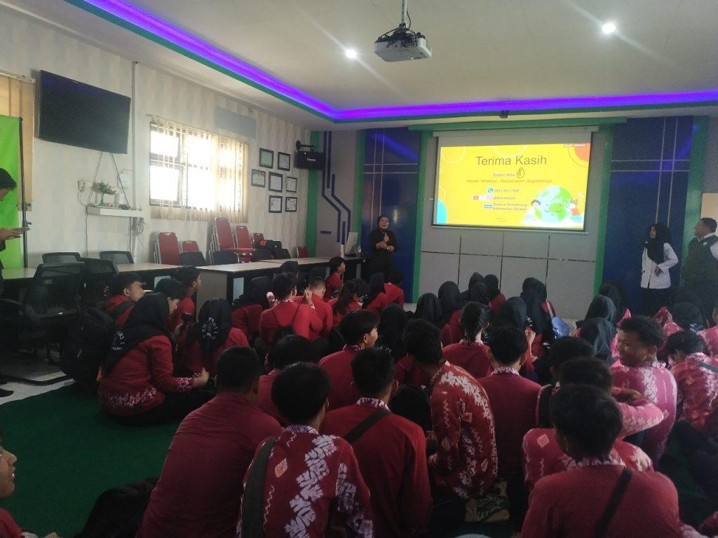 Selasa (7/10/2025), Kunjungan SMA PGRI 1 Banjarbaru pada Selasa, 07 Oktober 2025 ke BMKG Staklim Kalimantan Selatan, dengan jumlah 55 siswa dan 10 guru pendamping. Narahubung Imam Ali Taba Marino dan disambut oleh Ibu Sri Widyastuti, S.T. Kunjungan ini merupakan bagian dari field study ke beberapa instansi, diantaranya BMKG Kalimantan Selatan, untuk menambah wawasan dan ilmu pengetahuan siswa. Kegiatan ini diisi dengan memberikan materi pengenalan tentang cuaca dan iklim dalam ruangan oleh Nisrina aryanti, S.Tr. Sedangkan, kegiatan di taman alat berupa mengenal berbagai alat pengukur cuaca dan iklim oleh Maulana Syarif, M.T.I. dan Binsar A.H. Manalu, S.Tr. Siswa dikenalkan dengan pemahaman praktis teknis tentang cuaca dan iklim untuk melatih mereka mengidentifikasi serta menganalisis sehingga membangkitkan kesadaran terhadap lingkungan sekitar mereka.