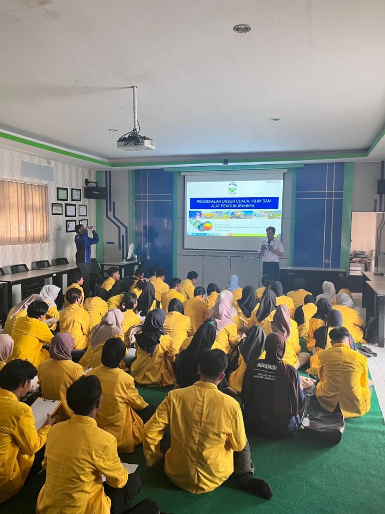Rabu (26/11/2025), kunjungan Universitas Lambung Mangkurat Fakultas Pertanian Jurusan Agronomi sejumlah 51 mahasiswa, 2 asisten ahli dan Dosen pembimbing. Kegiatan tersebut disambut oleh PMG Madya Staklim Kalsel Ibu Sri Widyastuti, S.T. Kunjungan ini dilaksanakan dalam rangka praktikum mata kuliah “Klimatologi Dasar” Jurusan Agronomi Fakultas Pertanian Universitas Lambung Mangkurat. Kegiatan ini dilaksanakan di lapangan dan materi di dalam ruangan. Materi di dalam ruangan disampaikan oleh Bapak Khairullah mengenai “Pengenalan Unsur Cuaca Iklim dan Alat Pengukurannya” dan dilanjutkan pengenalan alat di taman alat oleh Bapak Hendri, Ibu Nisrina, Bapak Harits, Ibu Indah dan Ibu Maulida. Acara diakhiri dengan dialog tanya jawab. Harapannya setelah kunjungan ini mahasiswa dapat memahami unsur cuaca/iklim dan cara mengukurnya di lapangan.
