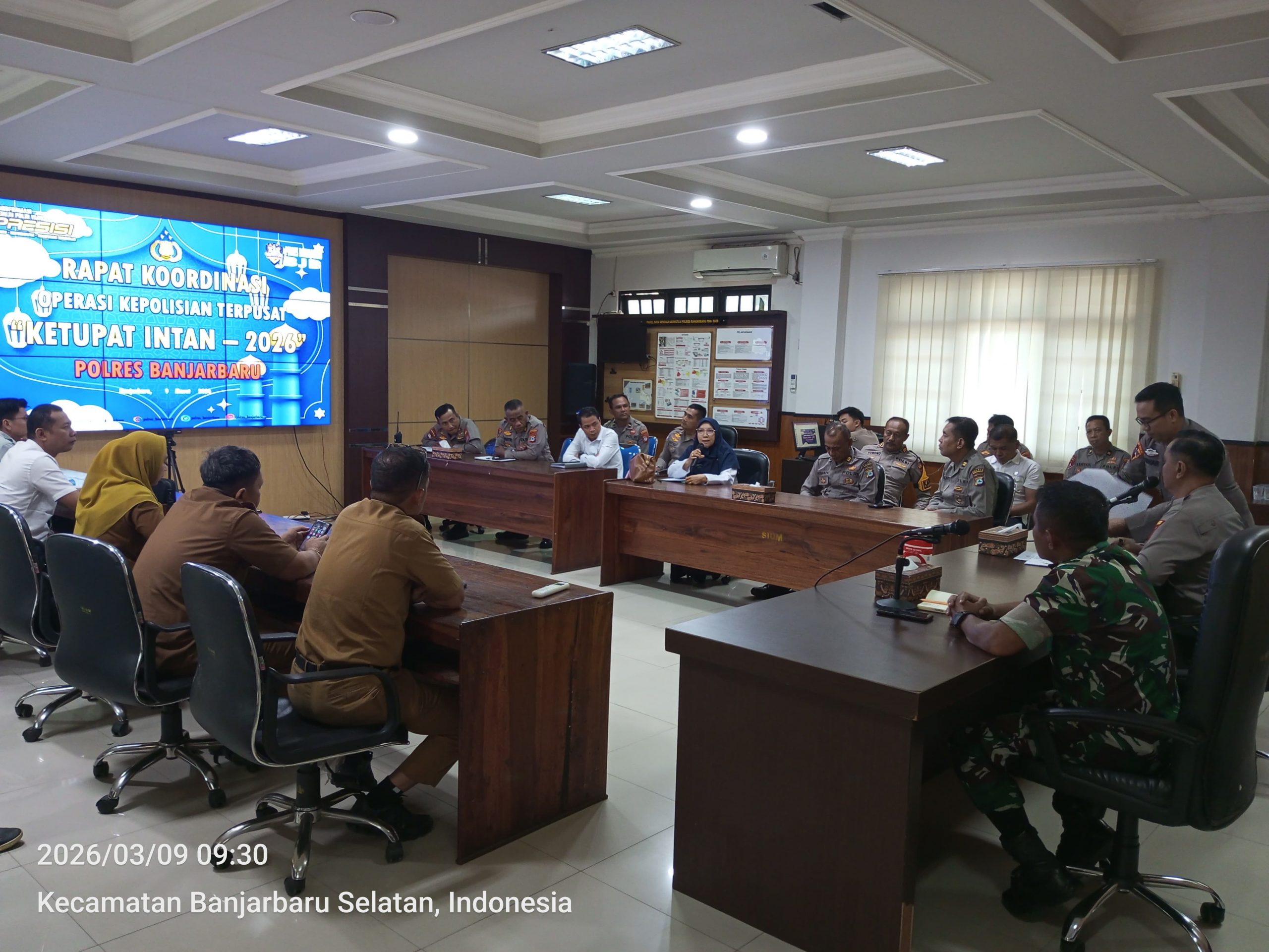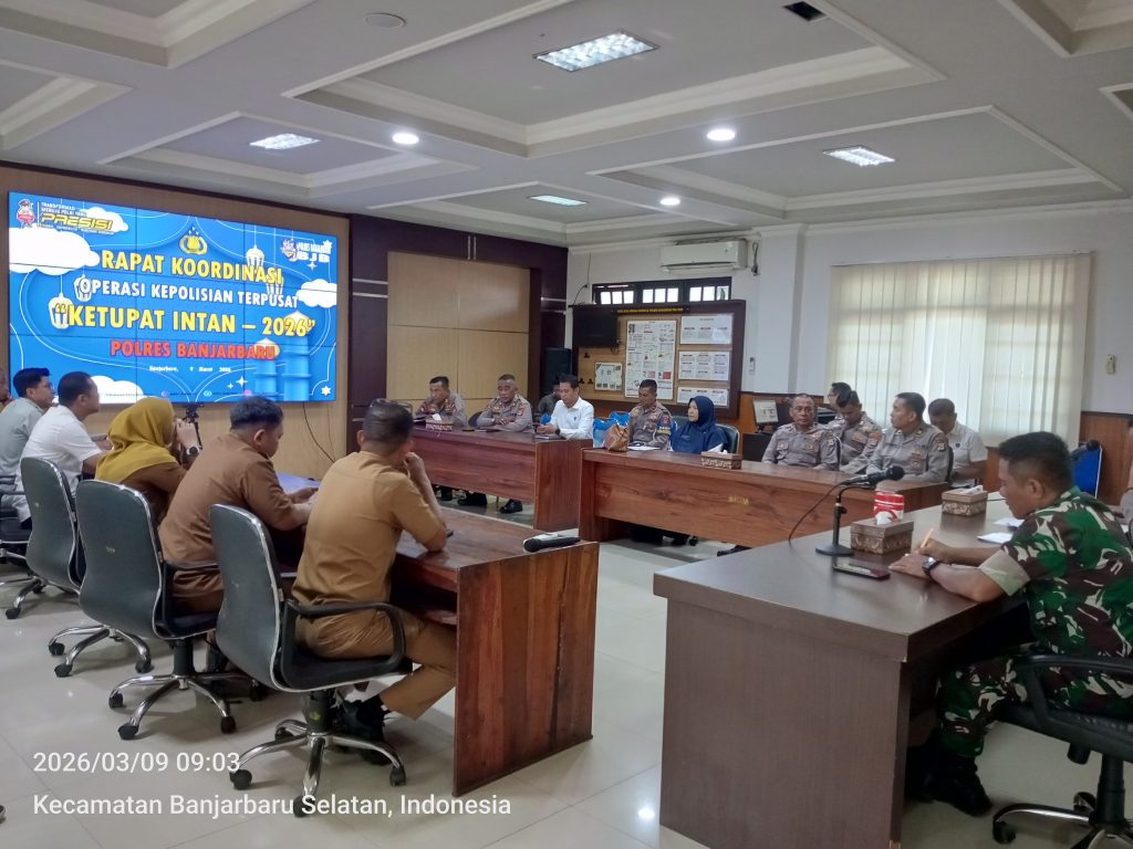 Senin (9/3/2026) Sri Widyastuti, S.T. PMG Madya mewakili BMKG Stasiun Kalimantan Selatan mengikuti Rapat Koordinasi Lintas Sektoral Pam Idul Fitri 1447 H, Operasi Kepolisian Terpusat ‘’Ketupat Intan – 2026” Polres Banjarbaru. Saat itu, beliau menyampaikan tentang Informasi Cuaca dan Iklim Provinsi Kalimantan Selatan untuk mempersiapkan kegiatan tersebut. Rapat tersebut dilaksanakan di Aula Utama Polres Banjarbaru, yang dihadiri oleh dinas terkaiat seperti Satpol PP, BPBD, Dinas Perhubungan, Dinas Kesehatan, PT Angkasa Pura, dan lain-lain. Masing-masing instansi terkait dihimbau masing – masing bisa bersinergi dan bekerjasama dan memberikan dukungan dengan tupoksi masing- masing dinas di Kota Banjarbaru. Rangkaian OPS Ketupat 2026 itu dilaksanakan, terhitung mulai 13 s.d. 25 Maret 2026, dengan Tagline Mudik TAHUN 2026 adalah ‘’Mudik Aman, Keluarga Bahagia ”serta Layanan Polri 110”. Informasi Obyek PAM Sholat IED, Lokasi Muhammadiyah Lapangan Jagung Jl. Angkasa Pura, Hal Masjid At-Taqwa Loktabat Utara, Lapangan Murjani, Lapangan Kantor Gubernur. Lokasi NU ada 65 Titik, 8 titik di Banjarbaru Selatan, 11 titik di Kecamatan Banjarbaru Utara, 13 titik di Lianganggang, 19 titik di Landasan Ulin, dan 14 titik di Cempaka.