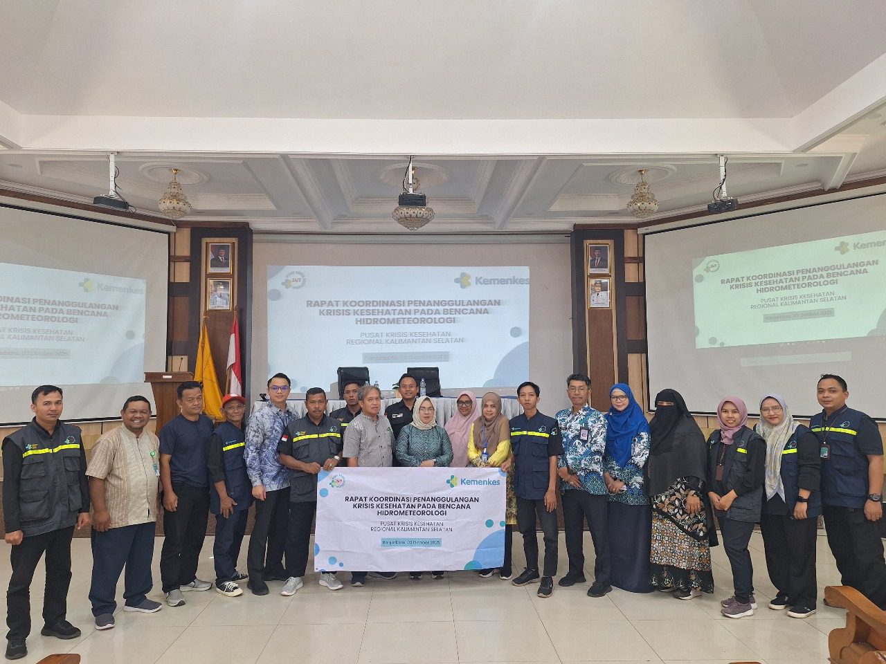 Jum’at, (3/10/2025) Kepala Stasiun Klimatologi Kalimantan Selatan Klaus Johannes Apoh Damanik, M.P., didampingi oleh staf Pokja Pengelolaan Data dan Informasi Mustika Wiratri, M.Ling. menghadiri Rapat Koordinasi Pengelola Pusat Krisis Kesehatan Regional di Provinsi Kalimantan Selatan, Kalimantan Tengah, Kalimantan Barat, Kalimantan Timur dan Kalimantan Utara. di Aula Balai Pelatihan Kesehatan Provinsi Kalimantan Selatan. Kegiatan ini bertujuan menyusun langkah-langkah strategis dalam penanggulangan bencana hidrometeorologi untuk memperkuat sinergi peranan BPBD, BMKG, Dinas Kesehatan dan beberapa instansi lintas sektoral serta menyamakan persepsi terkait koordinasi saat pra-kejadian-pasca bencana. Kegiatan ini dibuka oleh Kepala Pusat Krisis Kesehatan Kementrian Kesehatan RI yang diwakili dr. Susiyo Luchito, M.M selaku Kepala Pusat Krisis Kesehatan Regional Kalimantan.